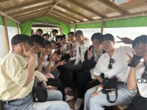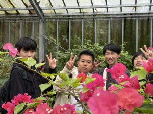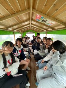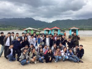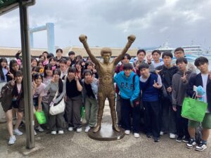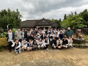 修学旅行初日、171名で出発し無事に石垣島に到着しました。天候不良により、川平湾でのグラスボートは中止となりましたが、バンナ公園展望台に行き先を変更し、エメラルドグリーンの海を一望しました。本土では見られないリュウキュウマツ、さとうきび畑、パイナップル栽培、蛍の大群を目の当たりにし、自然の豊かさを肌で感じる貴重な経験となりました。公設市場では、石垣牛、八重山蕎麦、ユーグレナドリンクに舌鼓。
