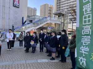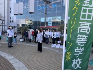本活動には、インターアクト部を中心に、生徒会、吹奏楽部、バレーボール部など多くの生徒が積極的に参加しています。また、2学期末考査期間中にもかかわらず、自主的に活動に参加した生徒たちの姿には、地域を思う気持ちと責任感の強さが感じられ、大変嬉しく思いました。