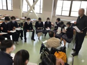 ○相手の立場で考えることの大切さを学ぶことができた。実際に関わって見て、声かけなどで笑顔になってもらえることが出来た。これからは、相手目線を大切に行動したいと思った。 (2-2 I)